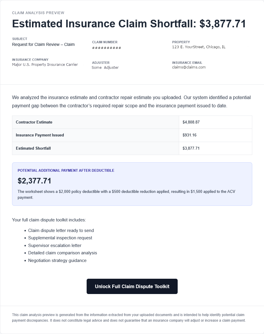 See the estimated claim gap before purchasing the dispute toolkit.